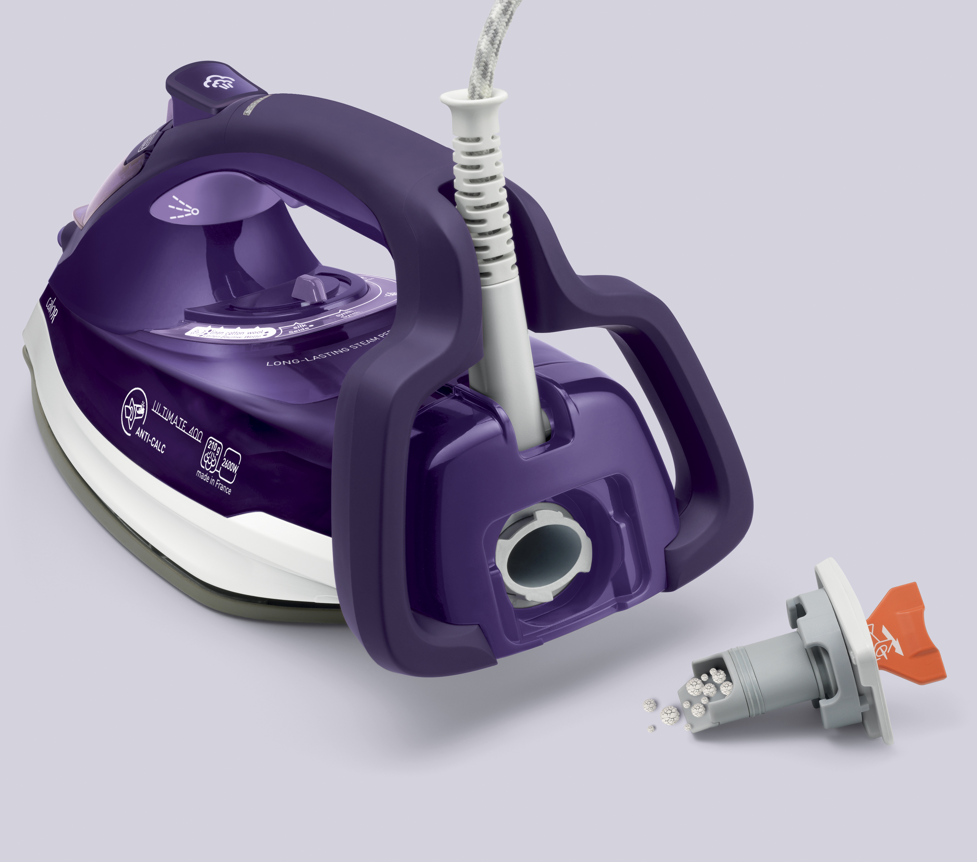 Tige anti-calcaire : ce système garantit à votre appareil une durée de vie plus longue et évite les traces blanches sur vos textiles. Il vous suffit de retirer la tige et de la nettoyer à l'eau vinaigrée avant de la remettre à sa place.